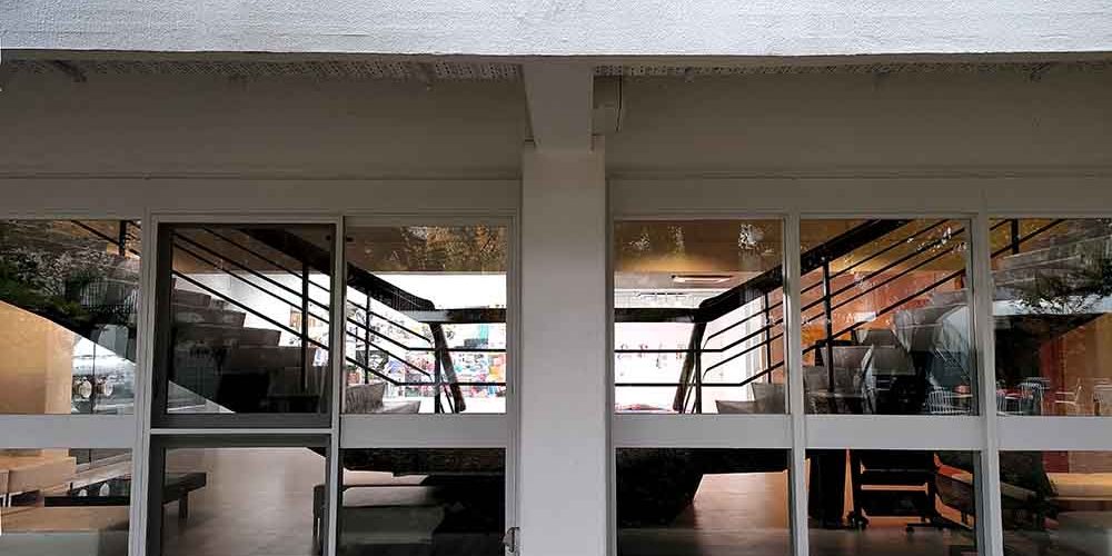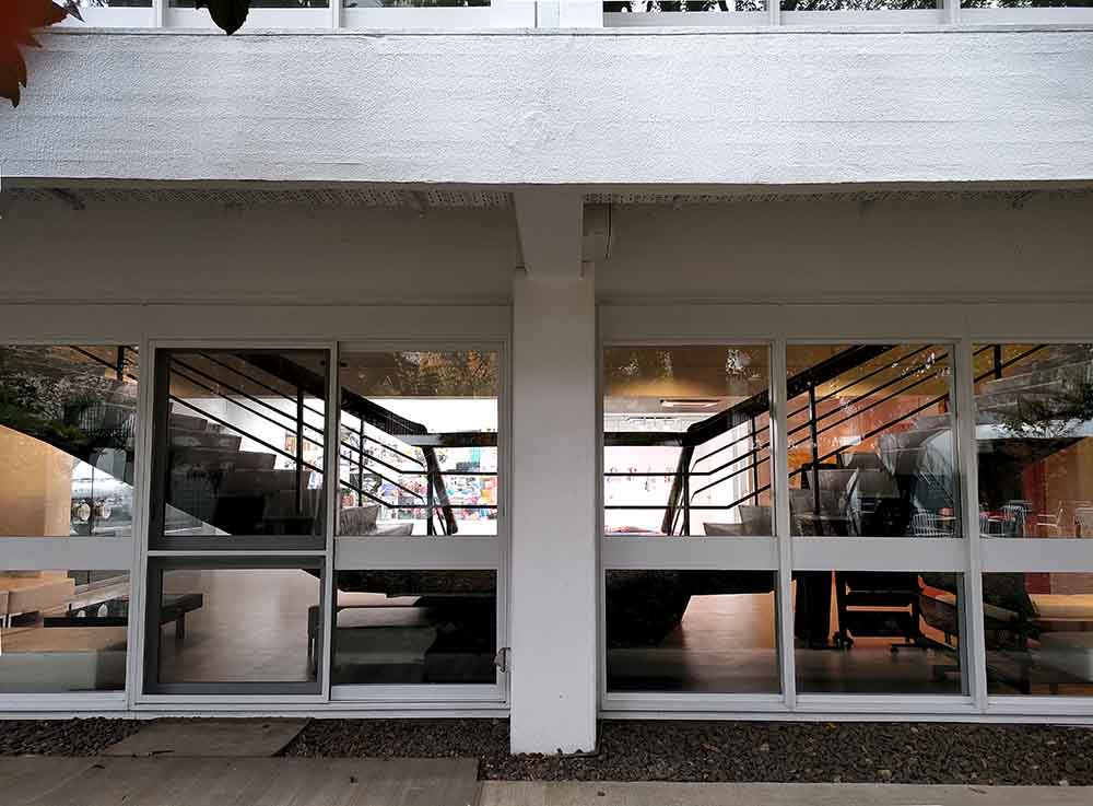 The other details the defines the exteriors is curtain walls. Sakakura used them in his projects. They are an exterior covering in which the outer walls are non-structural, so you can use lightweight materials. For this building, he used wooden sashes, which provides fine impressions a bit like Japanese shoji – partition panels.
