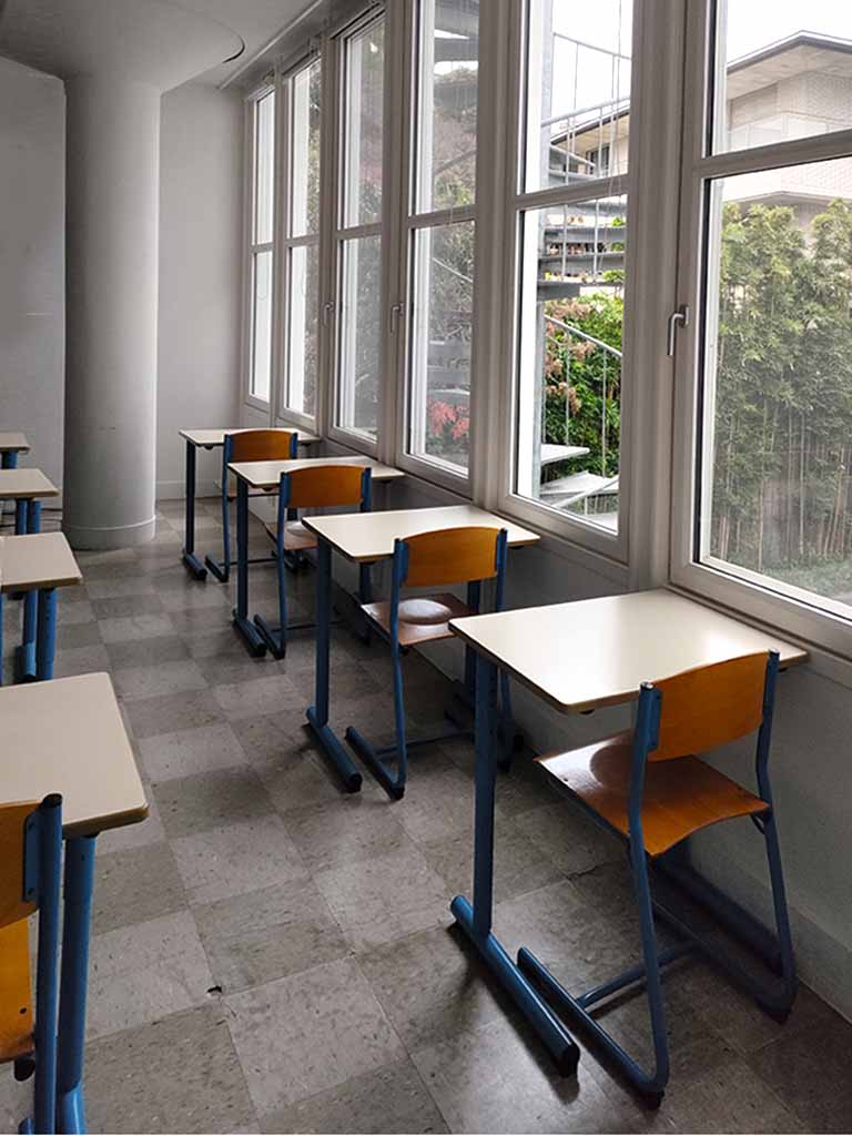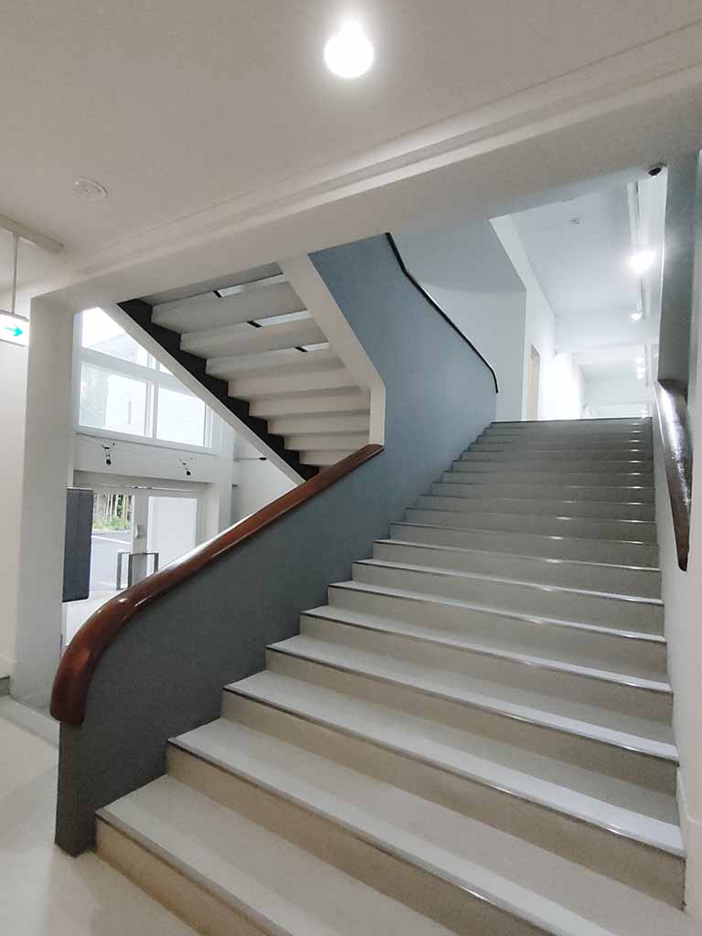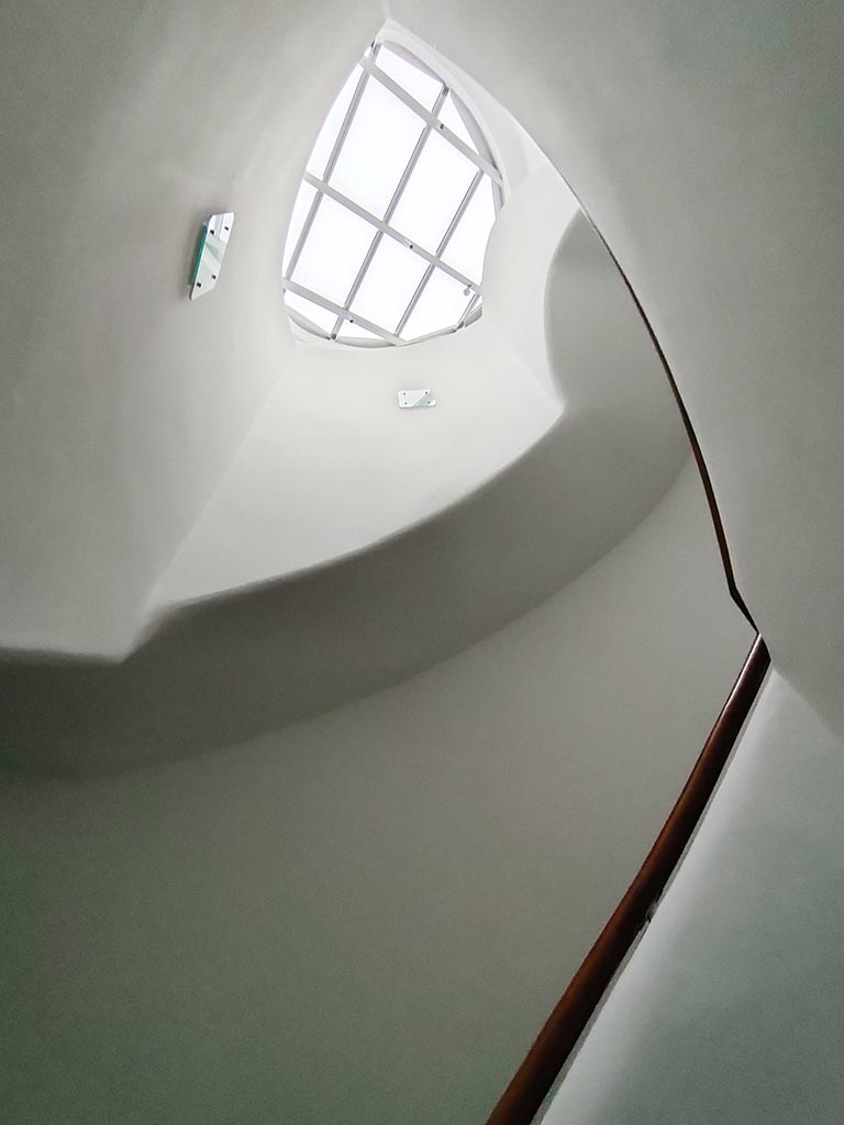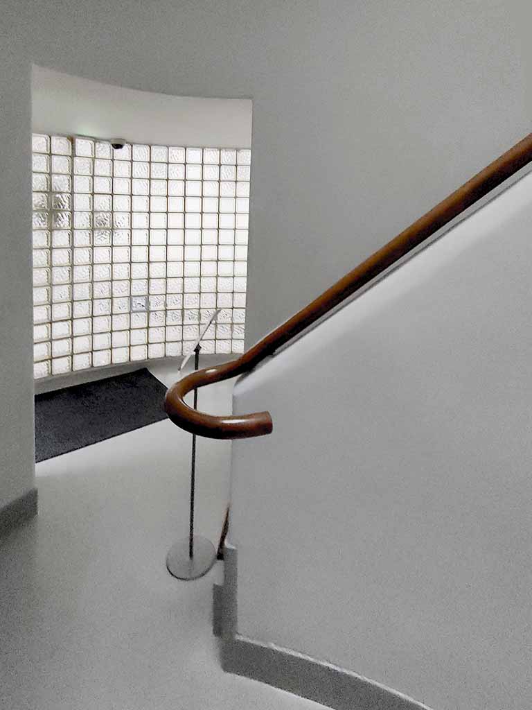 The staircase is inside the “Sakakura Tower,” which was originally designed as residential units for the chairman of the institute. It is believed Sakakura made the staircases redundant so that the chairman and his family could use the alternative staircase to avoid being spotted by students.