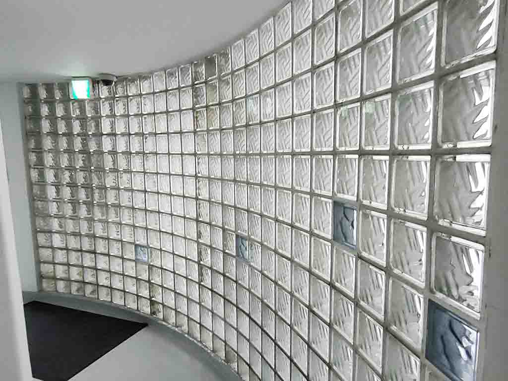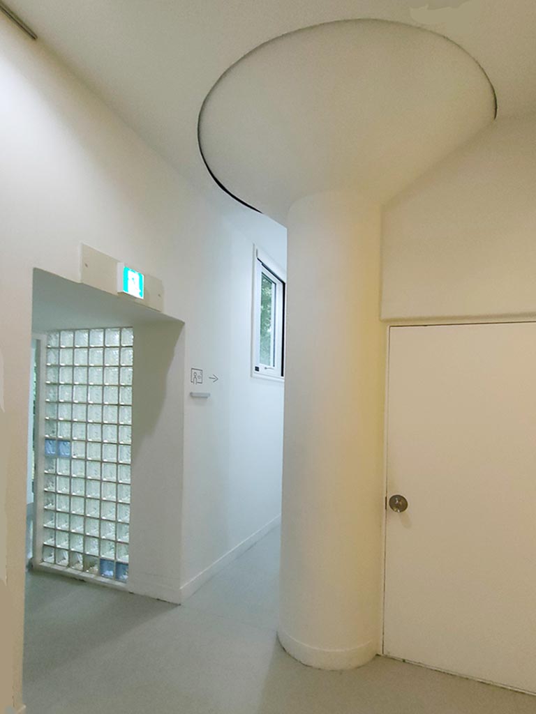 Sakakura used the fat “champignon-pillars” that support the upper floors as one of the motifs. (They were originally painted blue and were more eye-catching.) We don’t know why Sakakura chose the “champignon”-shaped pillar. However, one theory suggest that it was meant to increase structural strength to deal with earthquakes. (Japan is earthquake-prone.)