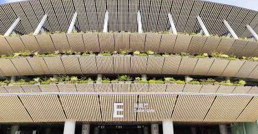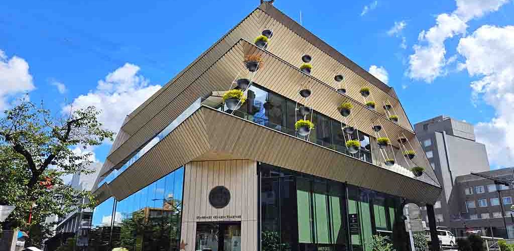 Starbucks Reserve® Roastery Tokyo opened in 2018 as Starbuck’s fifth roastery in the world. It is nested in a nice neighborhood along Meguro River, but it’s more than 10 minutes’ walk from nearest stations (Tokyu Line Nakameguro Station, Tokyu Denen Toshi Line Ikejiri Ohashi Station, or Keio Inokashira Line Shinsen Station). If you don’t want to walk, you may want to take taxi from Shibuya Station. The four-story building surrounds a 17 meter-tall cask (coffee bean storage). As it sits next to Meguro River (which is famous for beautiful sakura cherry blossom in spring), Kuma added terraces on upper floors inspired by traditional Japanese engawa. Layers of eaves are finished by cedar slabs reminiscent of the Five-story Pagoda often found in ancient Japanese temples.
