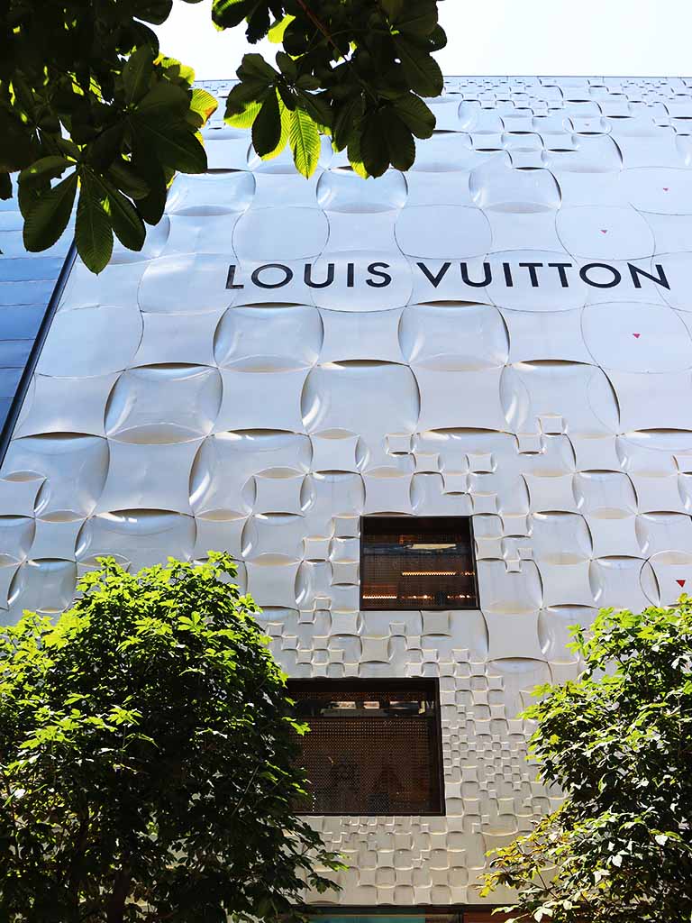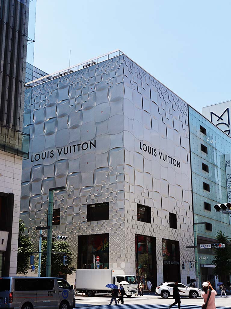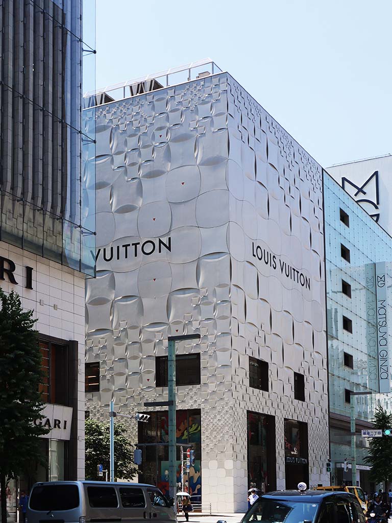 Japanese architect Jun Aoki designed the exterior of the Louis Vuitton Matsuya Ginza store in 2013.