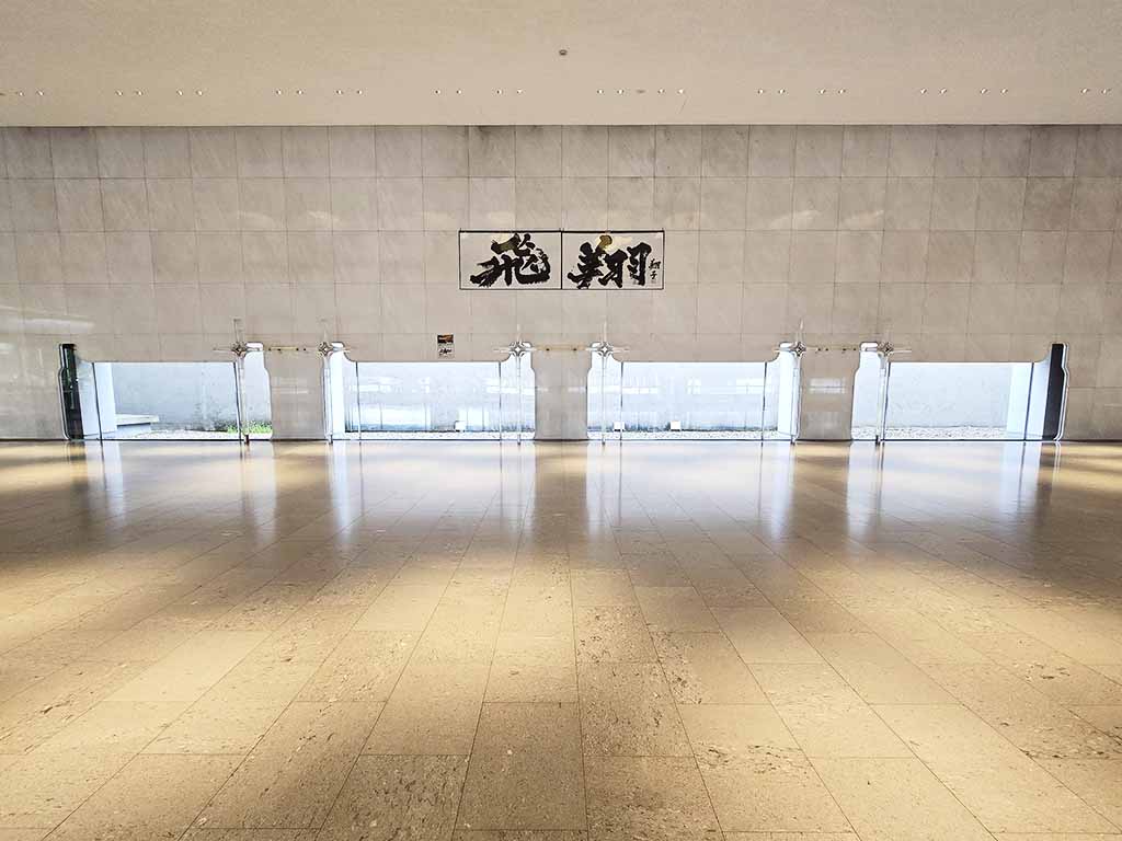One of the interesting aspects of this hall is the fact that it’s asymmetrical. The right (East) side is more expansive compared to the left (West) side. The right side has columns whereas the left side does not. It is so because Murano shortened the left side and moved columns outside the walls. He balanced the entire area including the space outside the walls. Asymmetricity is a key feature of traditional Japanese architecture. It is unknown if Murano had it in mind, but he acknowledged that he focused on how the outside environment was introduced to the interior when designing this building. A seamless relationship of inside and outside was also an emphasis in traditional Japanese architecture.